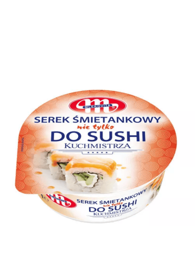 Serek śmietankowy Kuchmistrza nie tylko do sushi to jeden z podstawowych składników do przygotowywania sushi. Posiada delikatnie śmietankowy smak i konsystencję, która znakomicie sprawdza się w rolkach sushi każdego rodzaju, ale nie tylko - to produkt stworzony z myślą o wszechstronnym zastosowaniu w kuchni. Teraz dostępny w mniejszej porcji, praktycznej do codziennego użytku w domu.